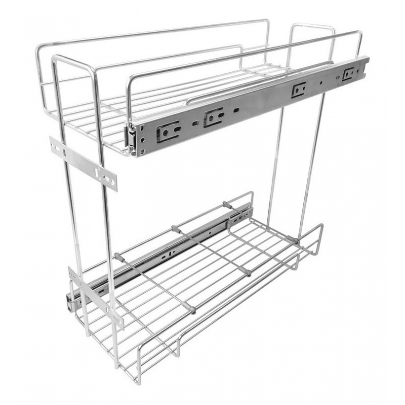 Acompanha trilhos telescópicos zincados, que vão desmontados da peça. Perfeito para nichos em cozinhas com instalação lateral.