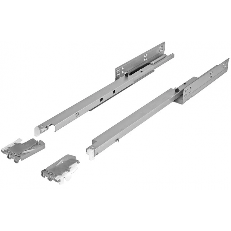 Esta corrediça apresenta sistema de extração total com Slow Motion para a abertura suave das gavetas.