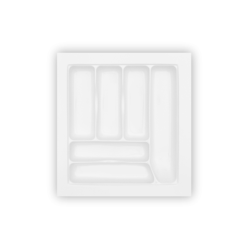 Divisor de talheres de plástico branco. Pode ser cortado nas seguintes medidas: