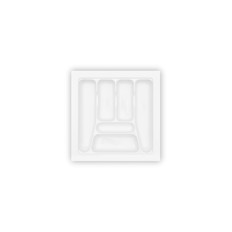 Divisor de talheres de plástico branco. Pode ser cortado nas seguintes medidas: